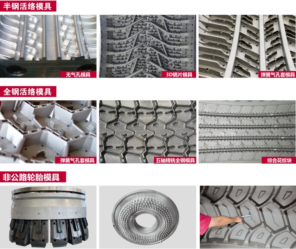 軟控模具系列產(chǎn)品主要有子午胎全鋼活絡(luò)模具、子午胎半鋼活絡(luò)模具、工程胎模具等,目前,模具生產(chǎn)能力達(dá)到年產(chǎn)三千余套。