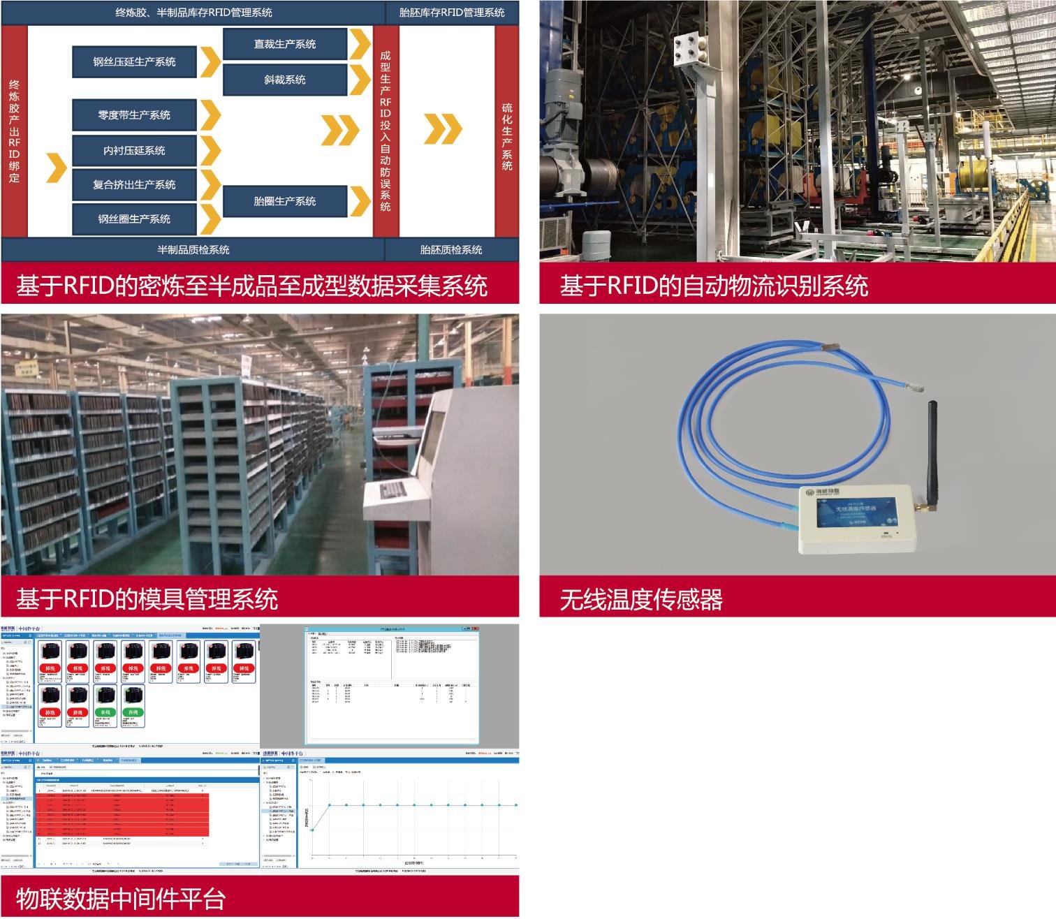 基于RFID的輪胎生產信息采集管控系統以RFID自動識別技術為主,集成各種物聯網技術,實現輪胎生產過程中的工藝信息采集控制、物料信息采集控制、倉儲運輸信息采集控制等功能。包括基于RFID的密煉至半成品至成型數據采集系統、基于RFID的自動物流識別系統、基于RFID的模具管理系統、EPD、物聯網平臺等主要產品。