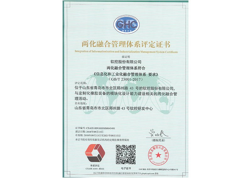 兩化融合管理體系貫標(biāo)證書(shū)