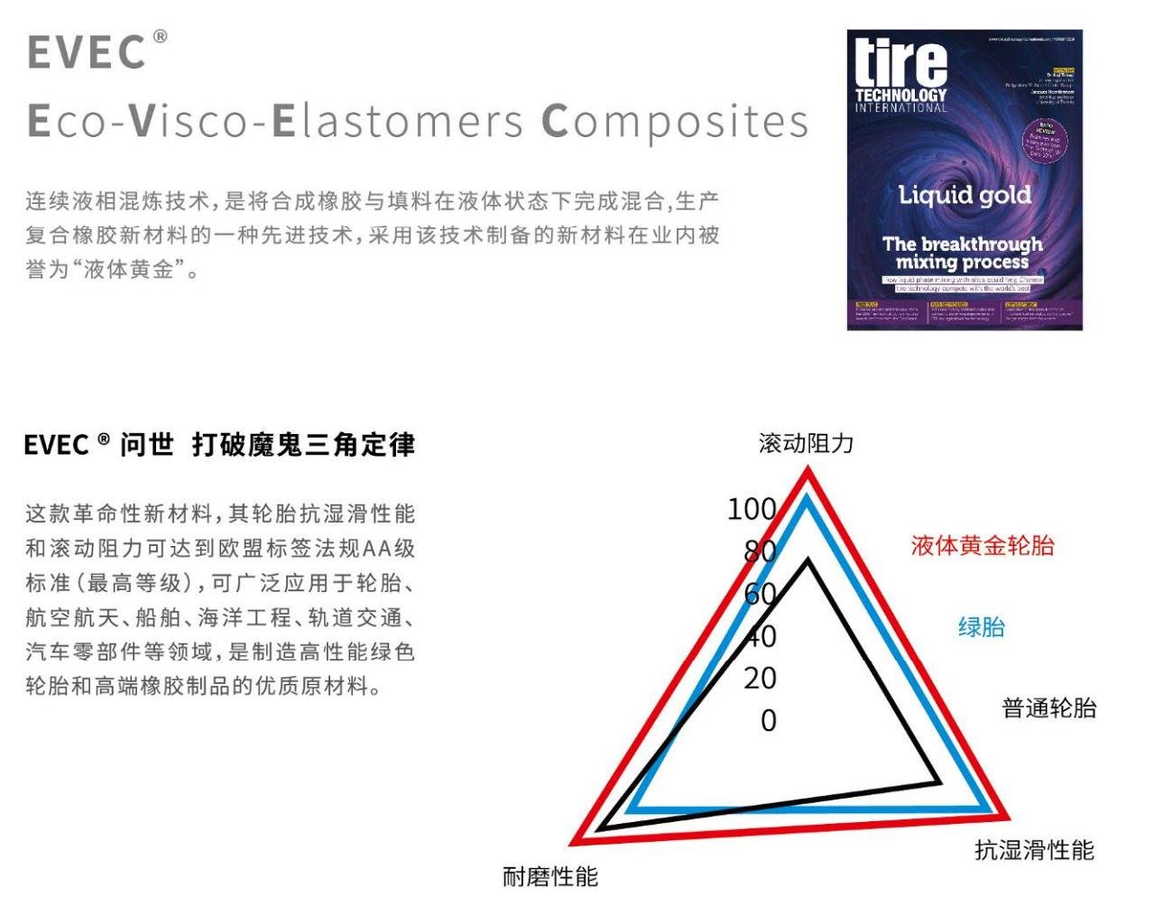 這款革命性新材料,其輪胎抗濕滑性能和滾動阻力可達到歐盟標簽法規 AA 級標準 (最高等級),可廣泛應用于輪胎、航空航天、船舶、海洋工程、軌道交通、汽車零部件等領域,是制造高性能綠色輪胎和高端橡膠制品的優質原材料。